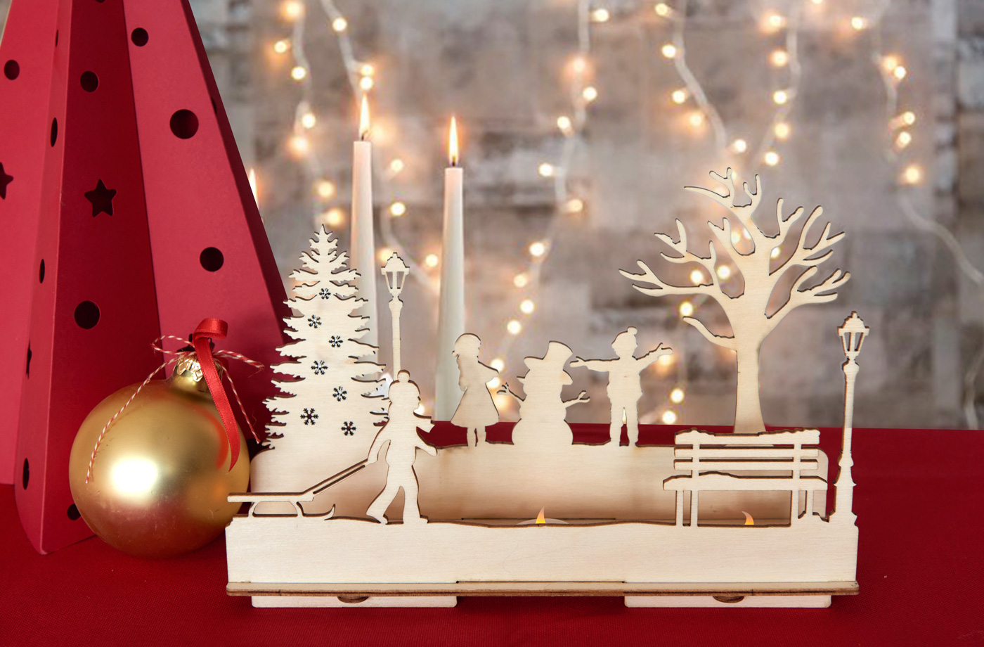 Ces bougeoirs en bois nu sur le thème de l’hiver et de Noël vous permettront de joliment décorer les fêtes de fin d’année.