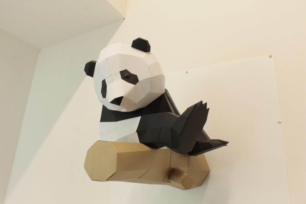 Contrairement à Édouard le panda, on n’a pas réussi à faire descendre ce panda de sa branche pour l’immortaliser. Et ce, malgré les feuilles d’eucalyptus qu’on lui agitait sous la truffe et les supplications d’Édouard. Résultat : on vous propose cette version du panda confortablement installé sur sa branche.
