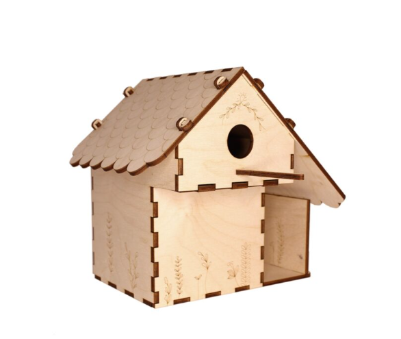 Notre second bien est un nichoir plus grand doté par rapport au premier nichoir d’un plus grand espace intérieur, d’un emplacement garage / place de parking et de petites gravures qui enjolivent ses murs. Fabriqués en bois de bouleau et en kits à monter avec ses petites ailes, complétez la finition de votre nichoir avec une couche de vernis afin de le protéger des intempéries. Placez de préférence votre nichoir dans un jardin accroché à un arbre par exemple, à l’abri de prédateurs tels que chats, chiens ou t-rex domestiques.