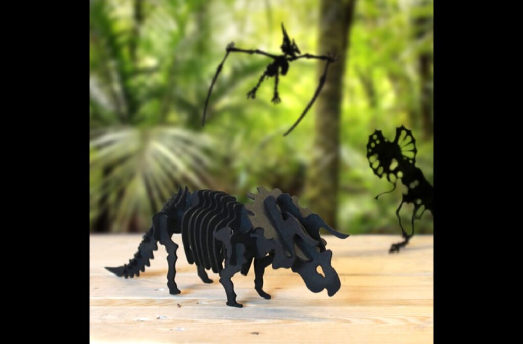 Composé de pièces en carton Pulp, le Tricératops de la Jurassic collection est à monter soi-même.