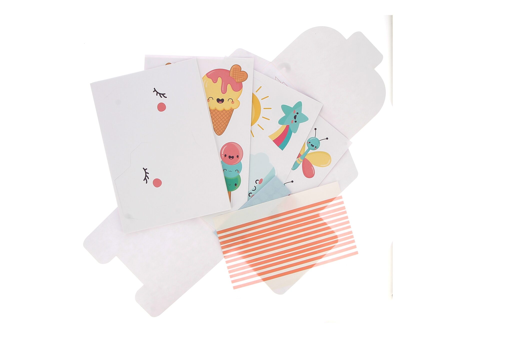 Cette petite licorne est fournie avec un ensemble d’accessoires tels que des arc-en-ciels, des étoiles, des cupcakes, enfin bref… tout ce qui gravite autour de l’univers d’une licorne, les paillettes en moins.