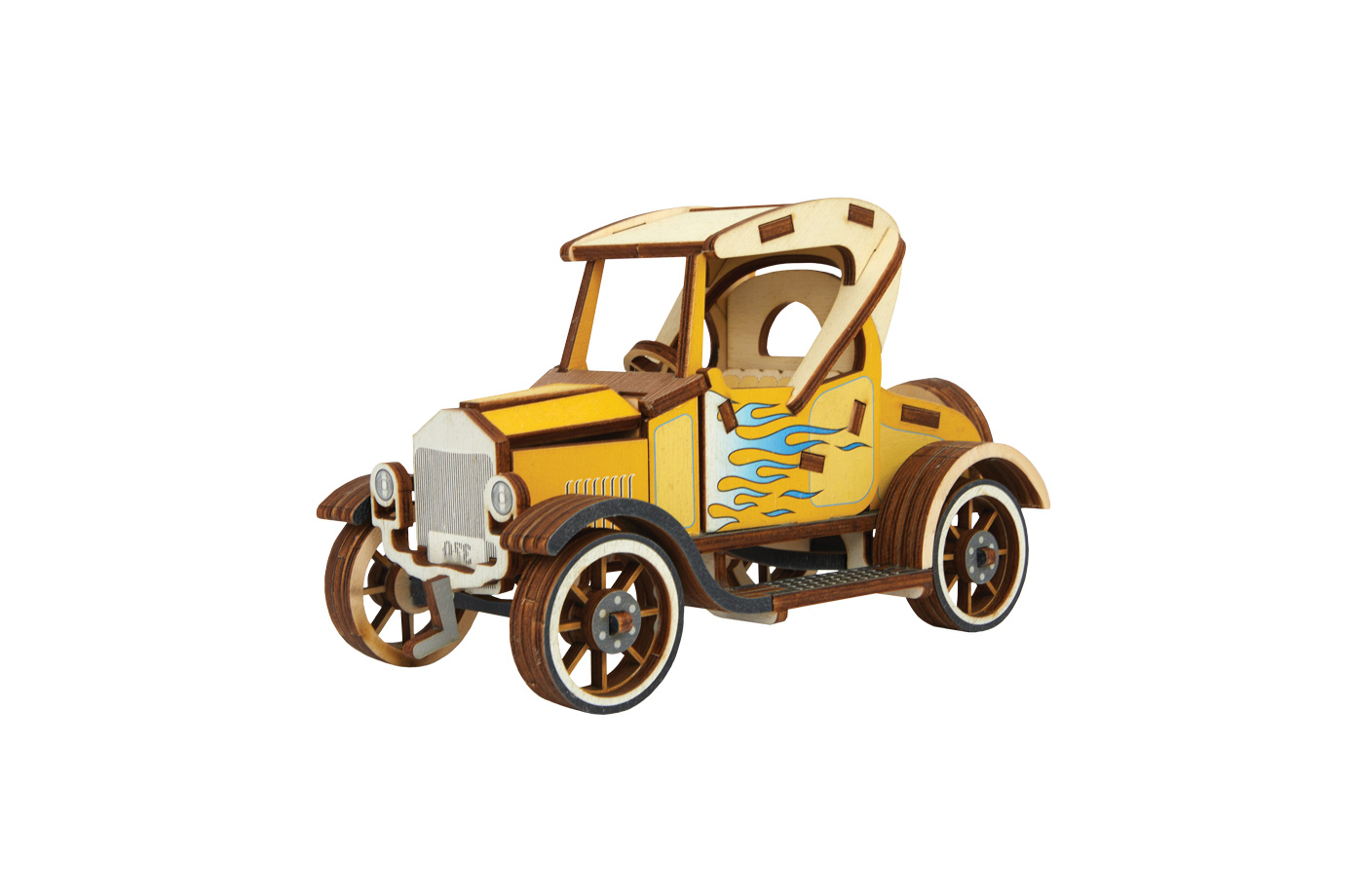 Tout droit venue du passé, voici un modèle de voiture en bois bien connu des amateurs : la Ford T. Fabriquée au tout début du XXe siècle jusqu’à la fin des années 20, la Ford T n’était peut être pas un monstre de vitesse avec des pointes à 65 km/h et son aspect pas très aérodynamique, il constituait à l’époque d’un moyen de transport bien pratique et surtout élégant ! Retrouvez dans nos maquettes en bois de Ford T toute l’élégance de l’époque, avec un modèle en bois nu à customiser soi-même, et 3 modèles en couleur dont un tout feu tout flamme !